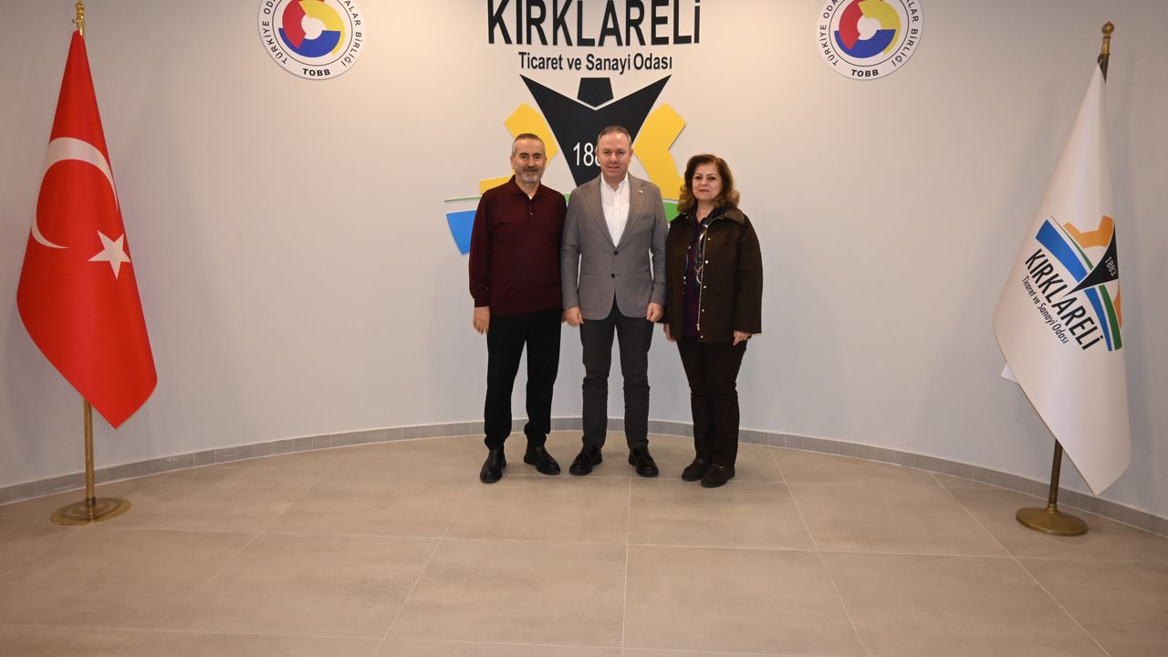 Kırklareli Ticaret ve Sanayi Odası (Kırklareli TSO) Yönetim Kurulu Başkanı Soner Ilık, önceki dönem Kırklareli İl Sağlık Müdürlerinden Dr. Mehmet Bilgin ve eşi Selda Bilgin’i makamında ağırladı. Ziyaret, karşılıklı iyi dilekler ve bölgenin gelişimine yönelik sohbetlerle samimi bir atmosferde gerçekleşti. Dr. Bilgin’in Kırklareli’de görev yaptığı dönemde hayata geçirilen sağlık hizmetleri ve iş birliği çalışmaları hatırlanarak, kentin genel gelişim sürecine katkı sunan tüm paydaşların önemine vurgu yapıldı.