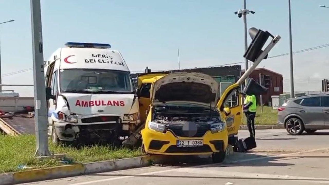 Kaza, Eski Kırklareli kavşağında meydana geldi. Edinilen bilgiye göre, S.A. yönetimindeki 64 KZ 240 plakalı Meriç Belediyesi'ne ait hasta nakil ambulansı ile A.S. idaresindeki 22 T 0385 plakalı ticari taksi kavşakta çarpıştı.
