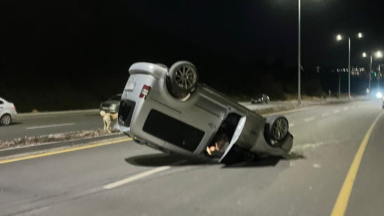 Adıyaman’da, kontrolden çıkan bir hafif ticari araç takla atarak ters döndü.