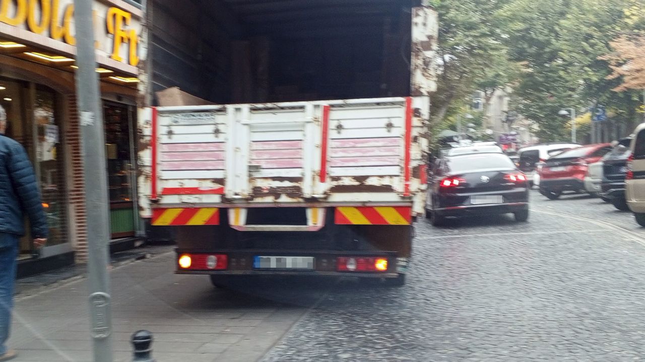 Kamyonun malzeme boşaltmak için durduğu öğrenilirken, bu süreçte sadece yayalar değil araç sürücüleri de olumsuz etkilendi. Duran kamyonun işgal ettiği alanda trafik akışı yavaşladı, diğer araçlar güçlükle ilerleyebildi.