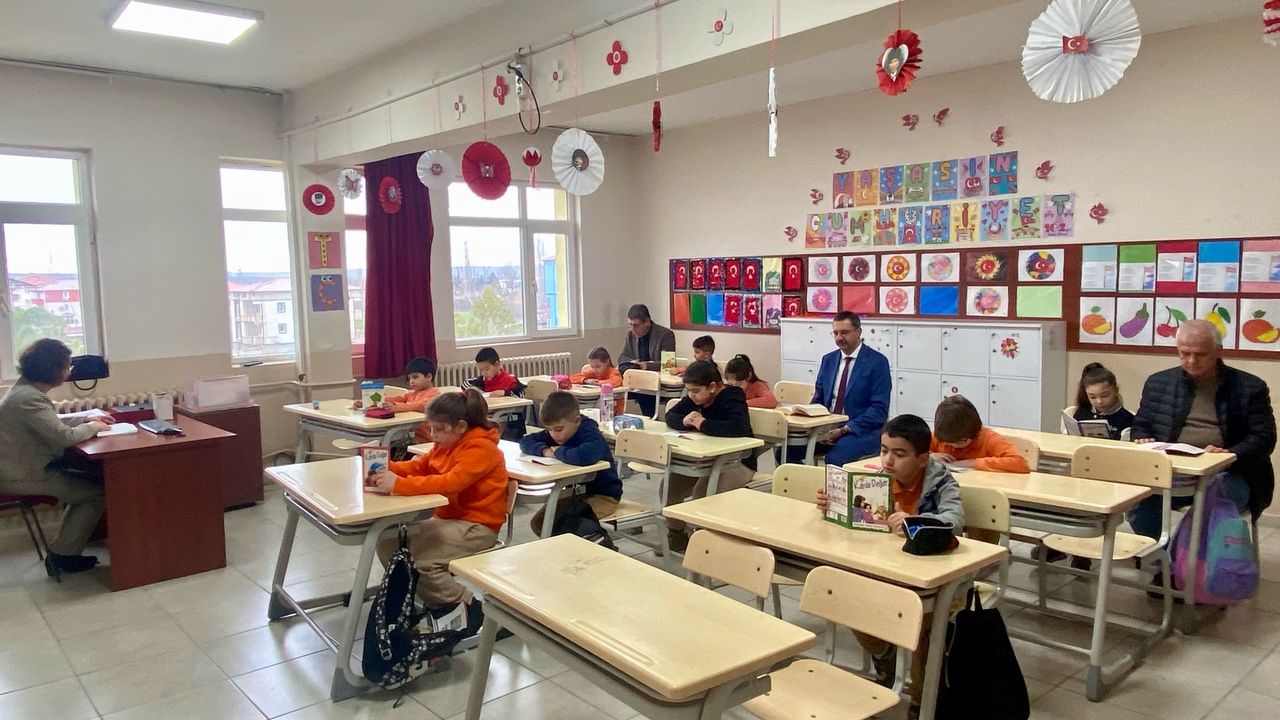 Pınarhisar Kaymakamı Enver Özderin, İlçe Millî Eğitim Müdürü Mahmut Doğan ile birlikte “Bir Kitap Bir Dünya” projesi kapsamında düzenlenen okuma saati etkinliğine katıldı. 19 Evler İlkokulu 2/A sınıfında gerçekleştirilen etkinlikte öğrencilerle aynı sırayı paylaşan Kaymakam Özderin, kitap okuma alışkanlığının küçük yaşlarda kazanılmasının önemine dikkat çekti.