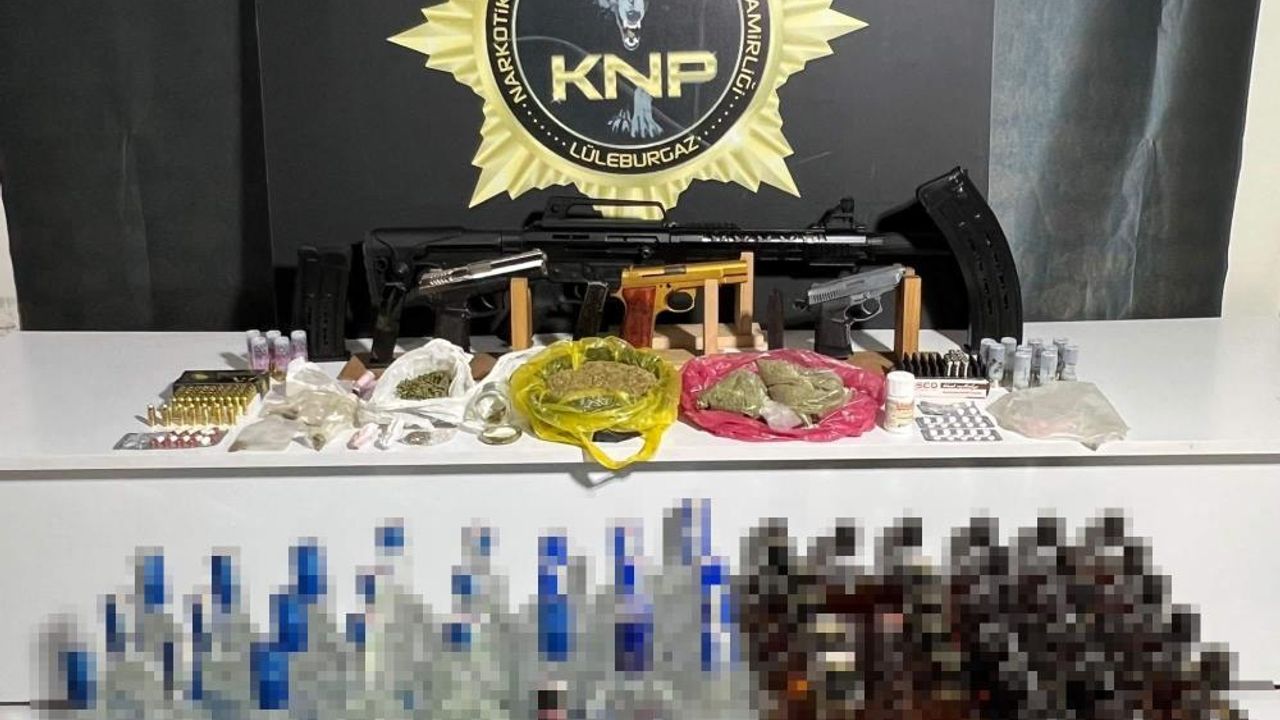 Lüleburgaz ilçesinde uyuşturucu madde ticareti yaptığı değerlendirilen hedef şahıslara yönelik gerçekleştirilen operasyonda 330,09 gram sentetik kannabinoid, 9,80 gram esrar, 23 adet sentetik ecza, 1 gram kokain, 2 adet ruhsatsız tabanca, 70 adet tabanca fişeği, 1 adet pompalı tüfek, 15 adet av tüfeği kartuşu, 27 şişe halinde 30,2 litre gümrük kaçağı rakı, 28 şişe halinde 28 litre gümrük kaçağı viski ile 1 adet kuru sıkı tabanca ele geçirildi.