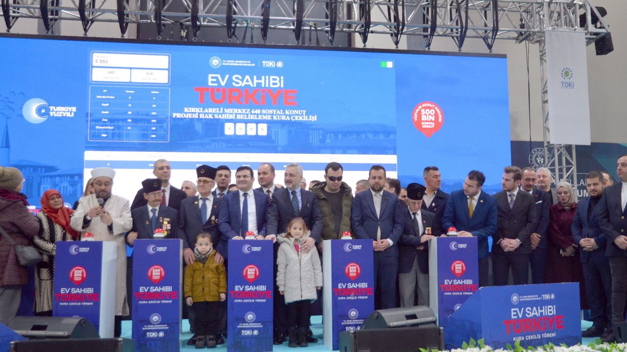 Yüzyılın Konut Projesi olarak duyurulan 500 Bin Sosyal Konut Projesi kapsamında hak sahiplerini belirleme kura çekilişi Kırklareli’nde Atatürk Kapalı Spor Salonu’nda yapıldı. Saat 11.00’de başlayan törene Kırklareli Vali Yardımcısı Hasan Tanrıseven, AK Parti Kırklareli Milletvekili Ahmet Gökhan Sarıçam, Kırklareli Üniversitesi Rektörü Prof. Dr. Rengin AK, TOKİ Başkan Yardımcısı Ömer Caniklioğlu, Kırklareli Belediye Başkan Yardımcısı Burak Süzülmüş, AK Parti Kırklareli İl Başkanı Yunus Emre Dağtaş ile hak sahipleri ve davetliler katıldı.