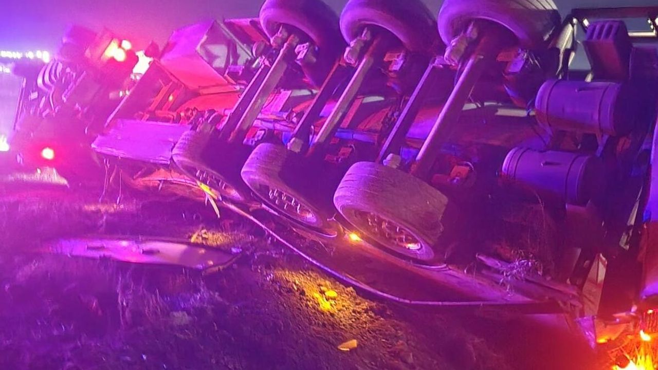 Mardin'in Nusaybin ilçesinde tırın devrilmesi sonucu meydana gelen kazada sürücü yaralandı.