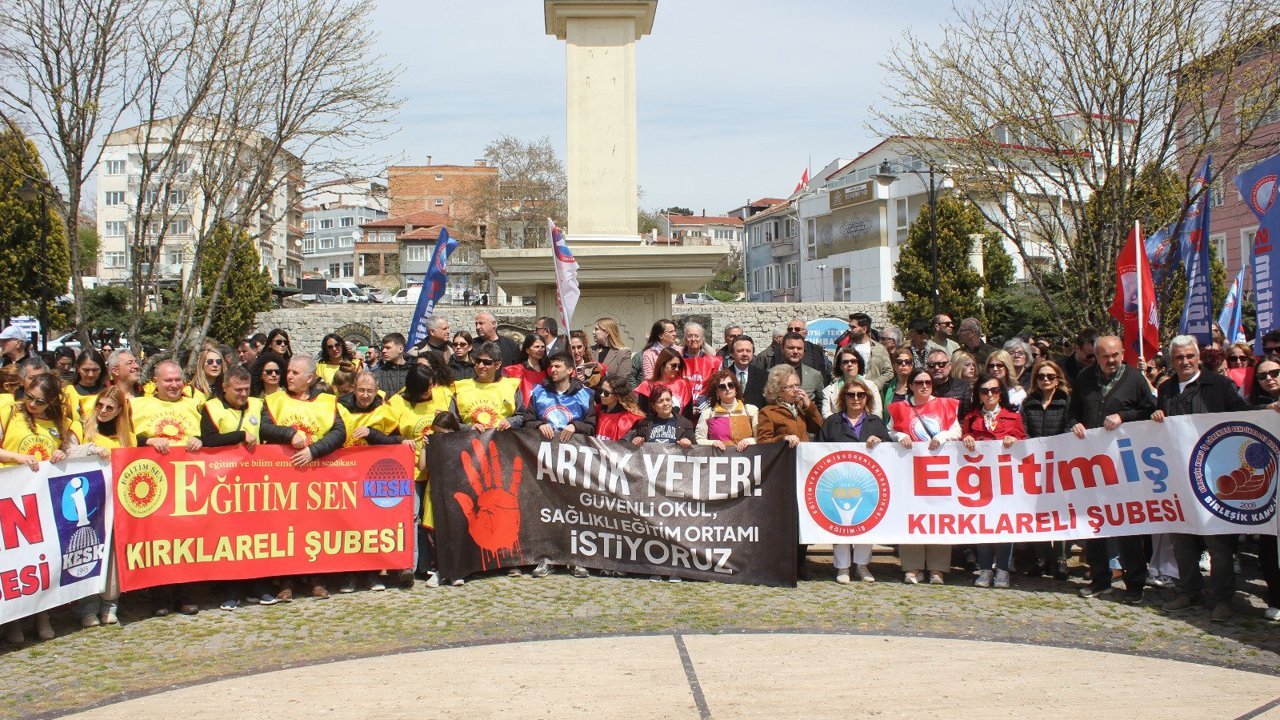 Şanlıurfa’nın Siverek ilçesinde bir lisede yaşanan silahlı saldırıya tepki olarak Kırklareli’nde üç eğitim sendikası ortak basın açıklaması yaptı. Öğretmenevi önündeki Özgürlük ve Demokrasi Parkı’nda gerçekleştirilen açıklamaya sendika üyeleri, sivil toplum kuruluşları ve bazı siyasi parti temsilcileri katıldı.