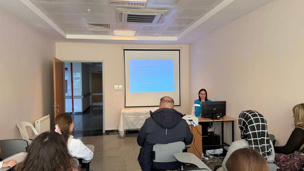 Pınarhisar Devlet Hastanesi’nde görevli Dr. Zeynep Nur Gökgöz tarafından hastane personeline yönelik “Karbonmonoksit Zehirlenmeleri” konulu eğitim programı gerçekleştirildi. Sağlık çalışanlarının yoğun katılımıyla yapılan programda, özellikle acil durumlarda doğru ve hızlı müdahalenin hayati öneme sahip olduğu vurgulandı.
