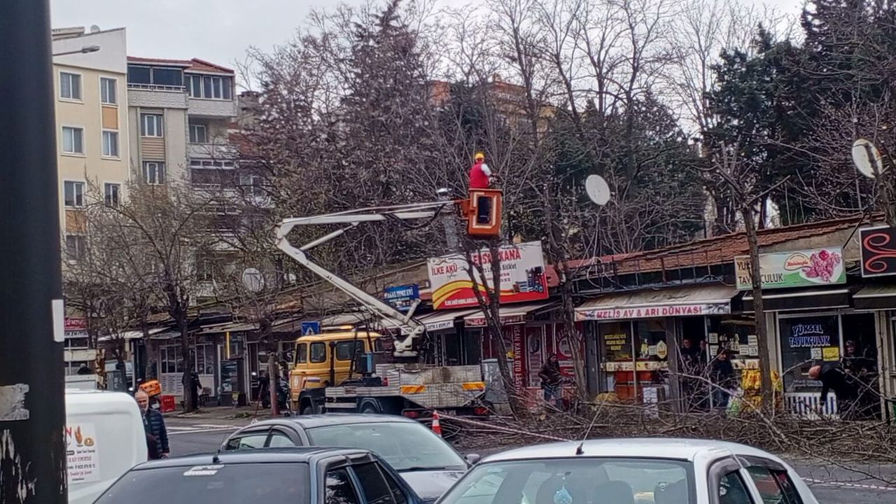 Yüksek güvenlik önlemleri eşliğinde yürütülen çalışmalarda, reflektörlü yelek giyen belediye işçileri sepetli araçla ağaçların üst bölümlerine çıkarak budama işlemini gerçekleştiriyor. Kesilen dallar yol kenarında toplandı. Bölgede oluşabilecek tehlikelere karşı bazı noktalar barikatla kapatılırken trafik akışı kontrollü biçimde sürdürüldü.