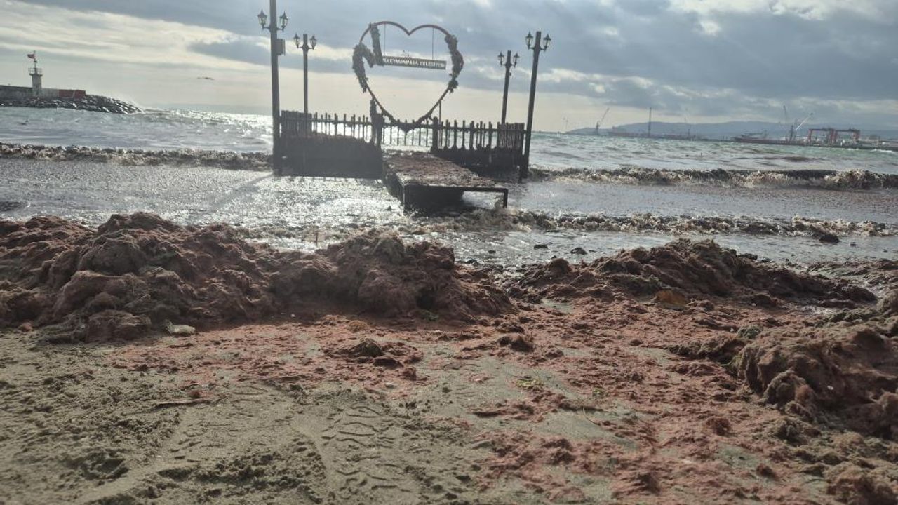 Marmara Denizi’nde etkisini artıran kuvvetli lodos, Tekirdağ’ın Süleymanpaşa ilçesi sahil şeridinde kendini net şekilde hissettirdi. Sert rüzgarın etkisiyle denizde oluşan dalgalar kıyıya yoğun miktarda kızıl yosun taşırken, sahil hattının büyük bir bölümü yosunla kaplandı. Görüntü kirliliğinin yanı sıra keskin koku da çevrede hissedildi.